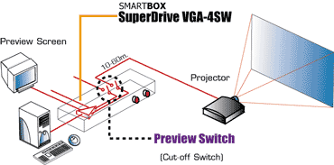 อุปกรณ์ Drive สัญญาณ VGA บางรุ่น ได้เพิ่มปุ่มตัดภาพเพื่อเตรียมพร้อมก่อนส่งออก (Preview Switch) ทำให้ควบคุมภาพที่จะไปปรากฎบนจอได้ ว่าจะส่งภาพออกสู่ Projector เมื่อใด เพิ่มความเป็นมืออาชีพในการ Presentation.